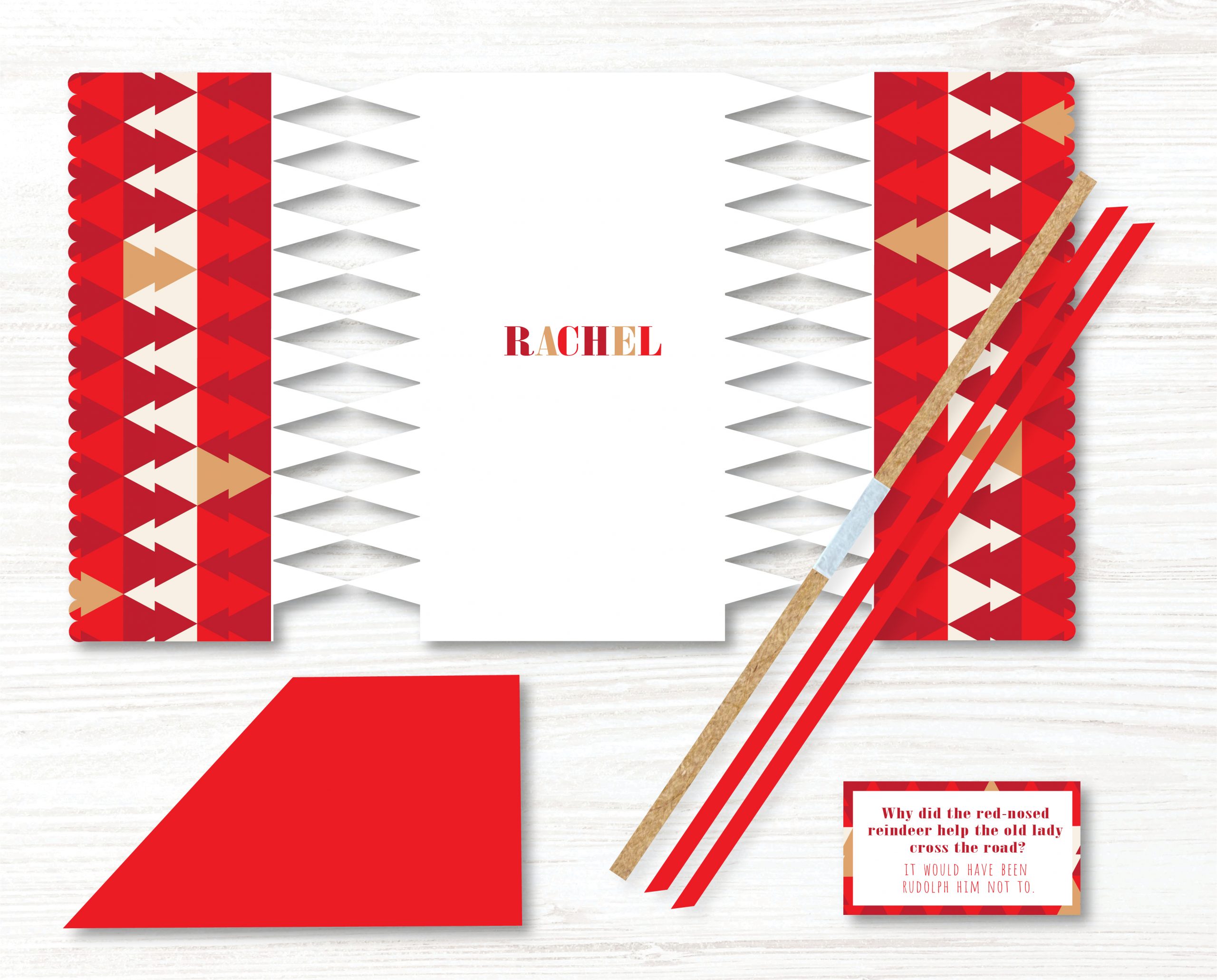 Packaging: The crackers come flat packed in a PIP box so you are able make and fill them yourself.