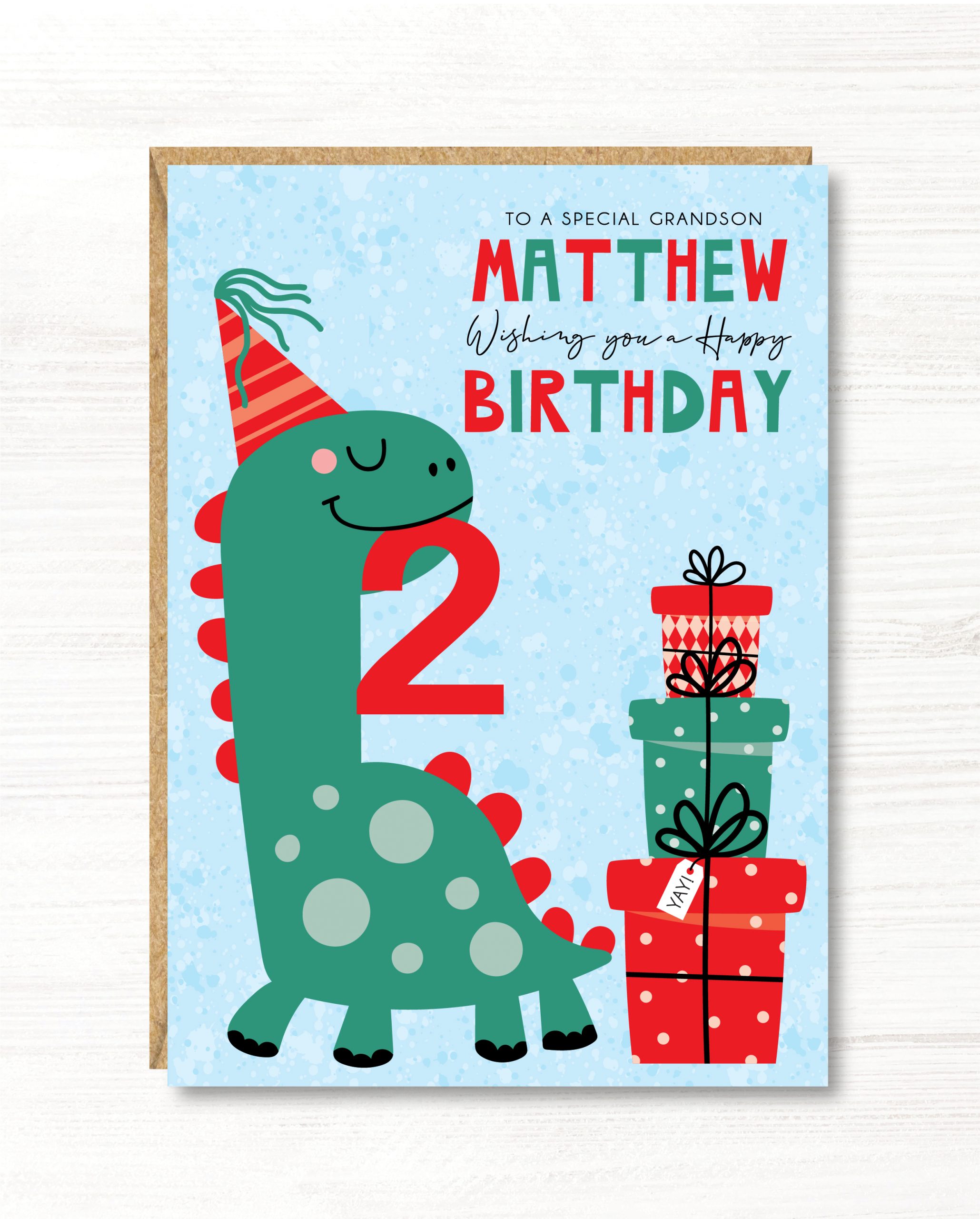 A5 Personalised Dinosaur Birthday Card.
