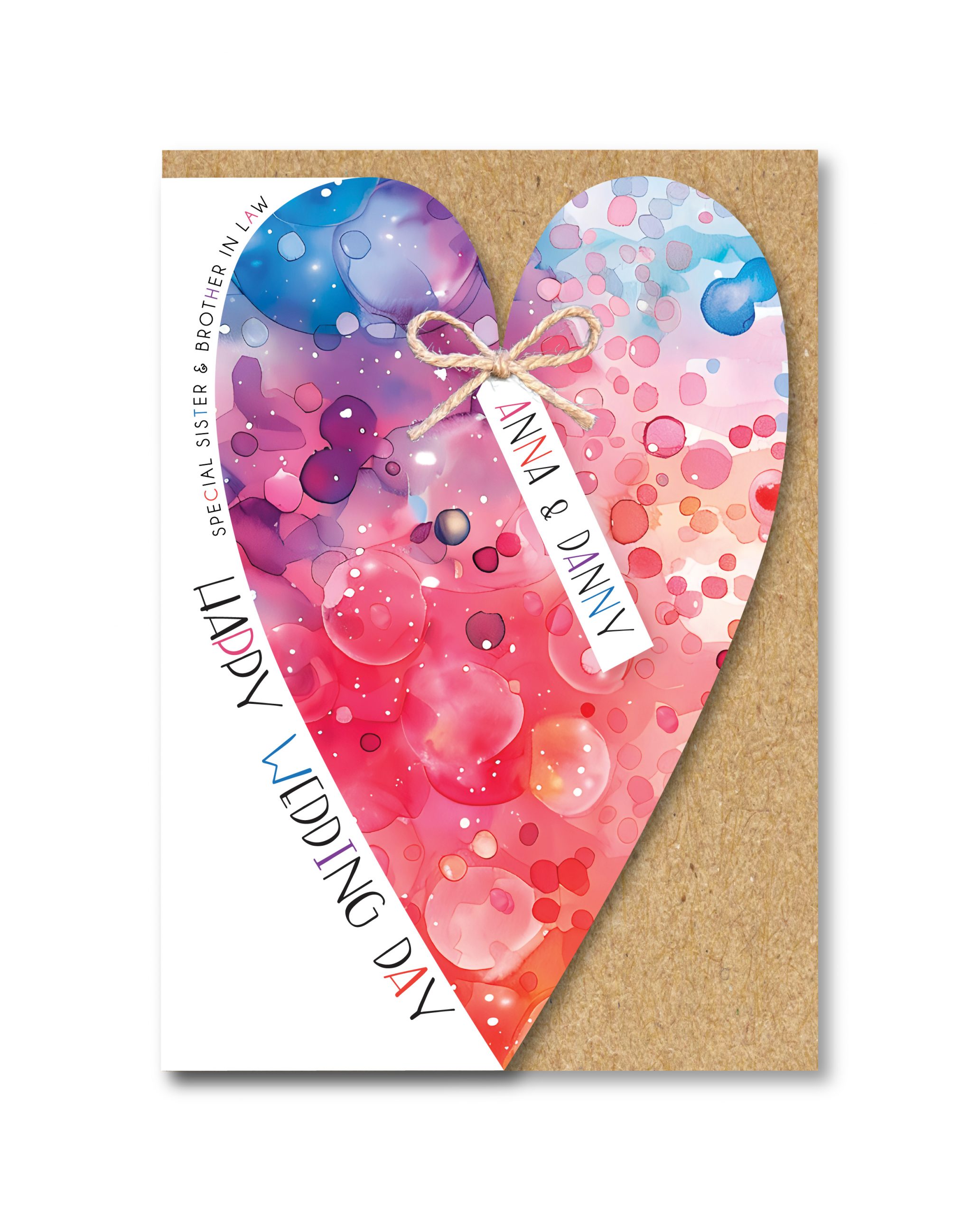 Beautiful bright watercolour patterned heart cut out to the right side,