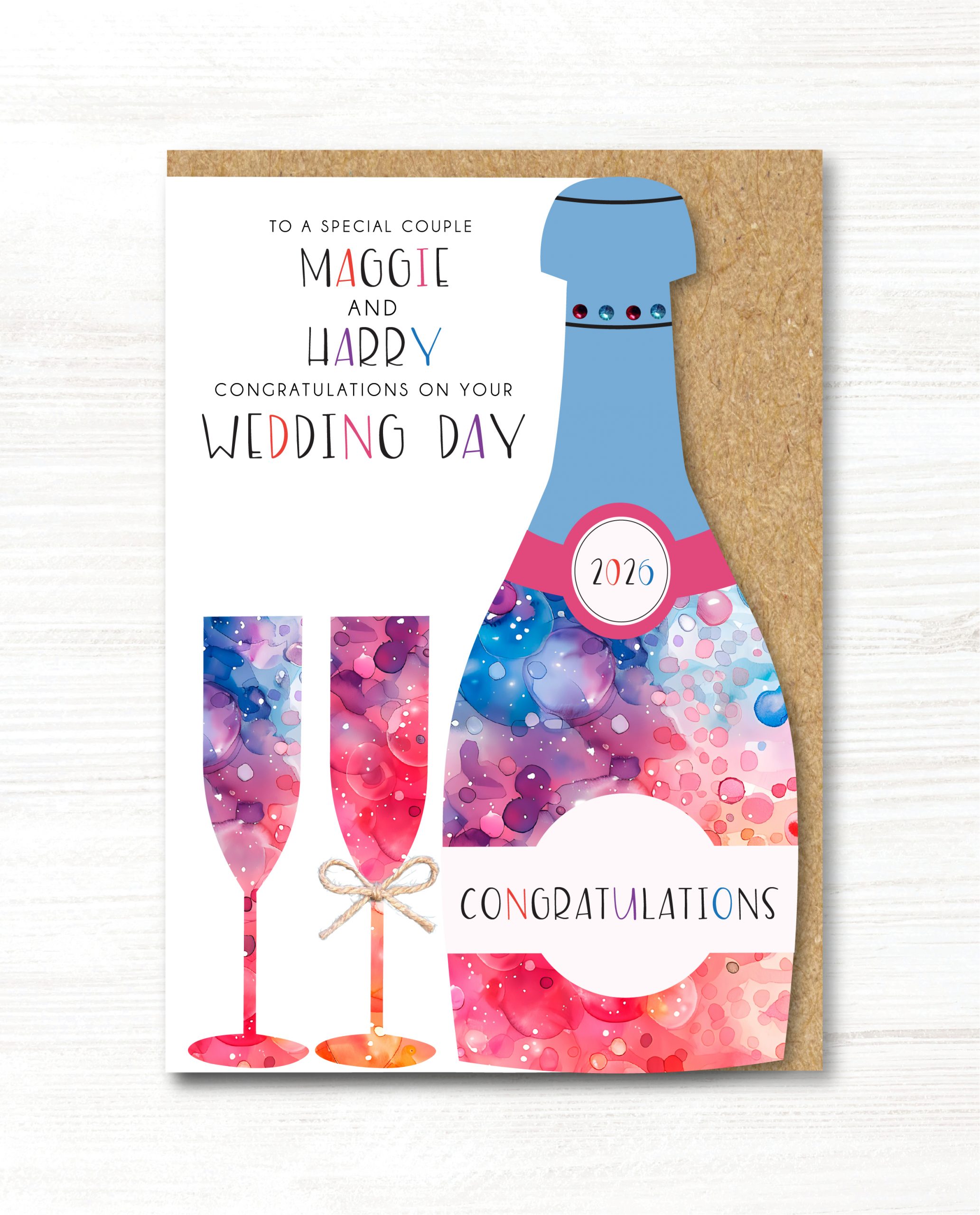 A5 Personalised Handmade Wedding Day Card.