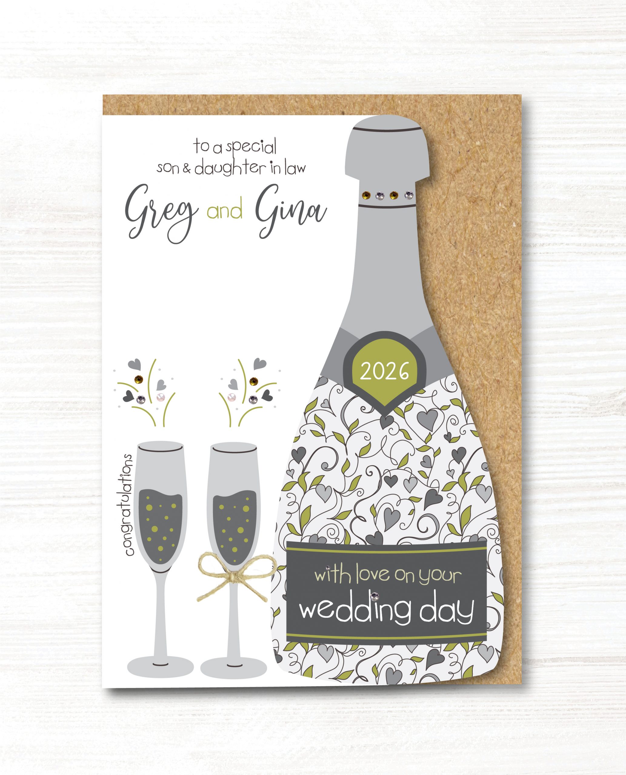 PERSONALISED NAMES at the top, with TO A SPECIAL DAUGHTER AND SON IN LAW ETC.