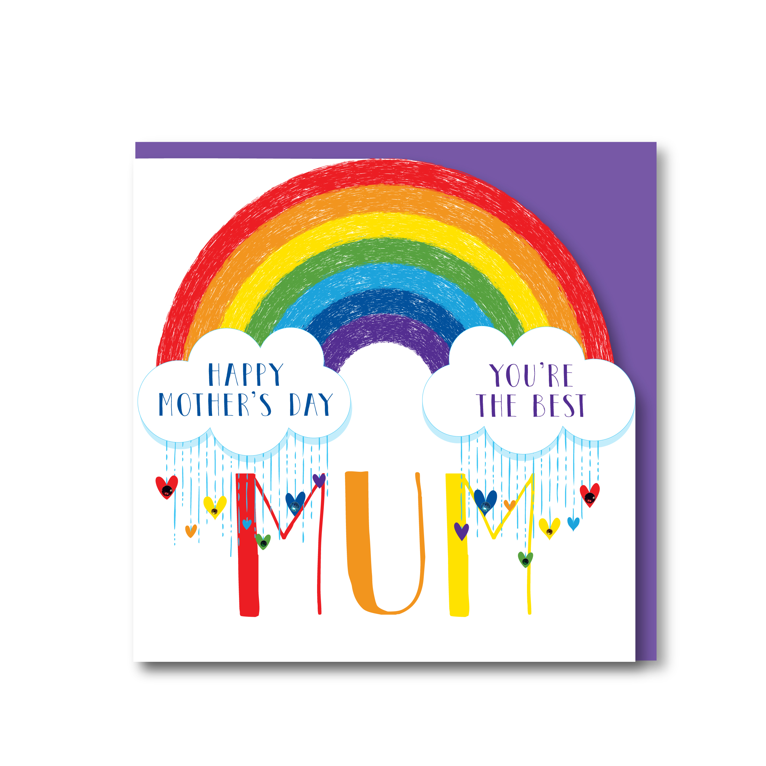 Hanging from the clouds is rain and lovely coloured hearts with 8 matching jewels!