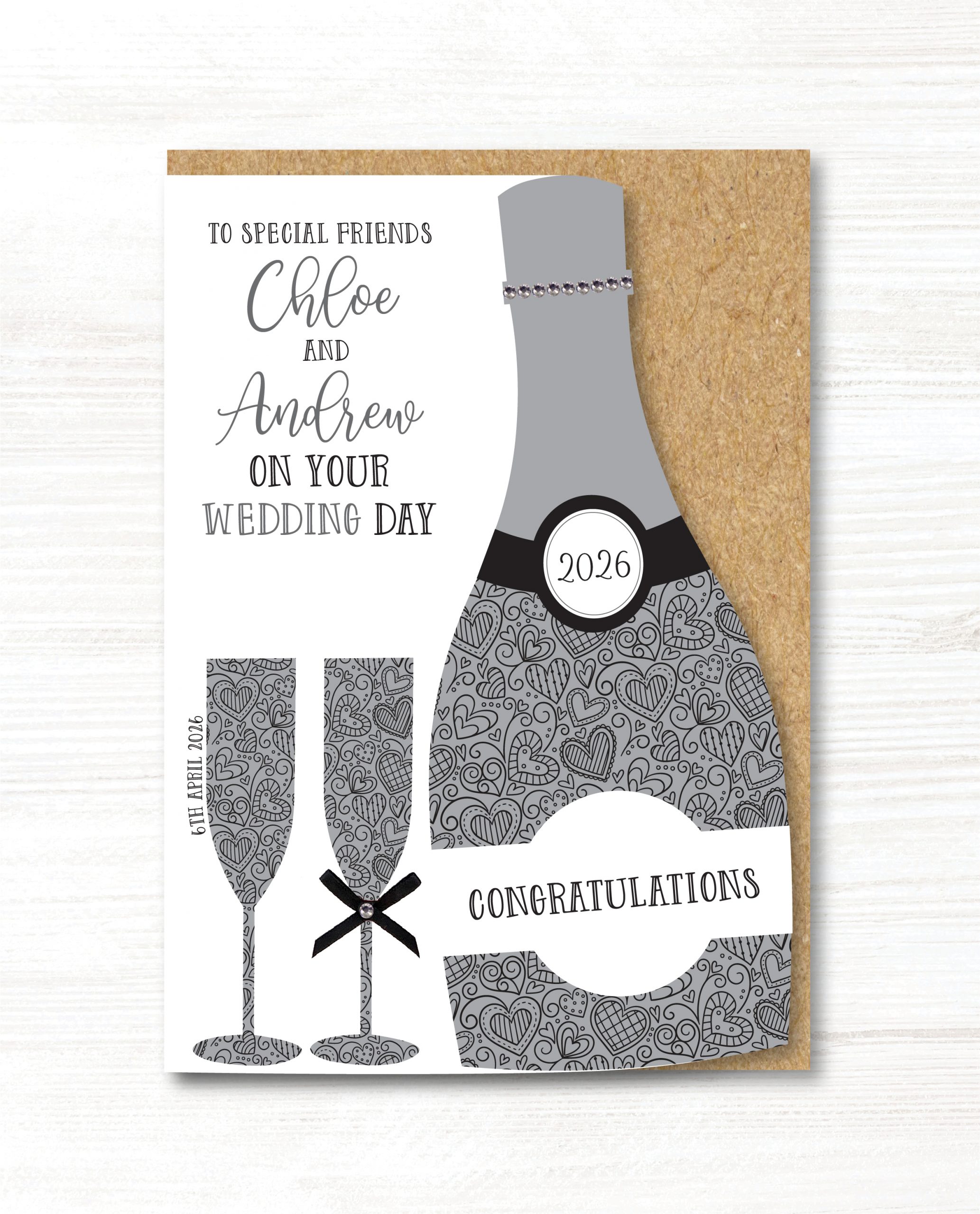 and ON YOUR WEDDING DAY and DATE around the glasses.