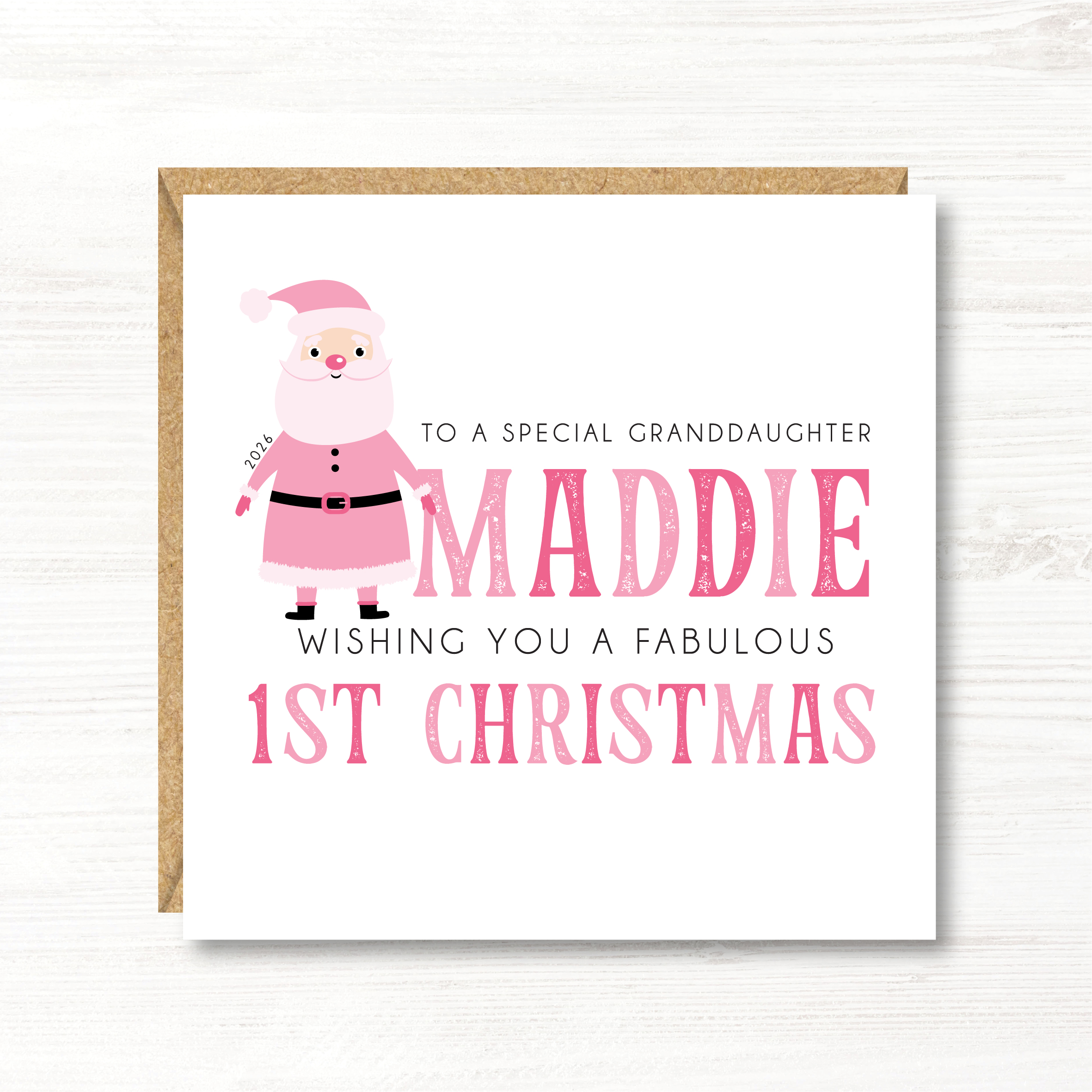 Personalised Baby Girl’s First Christmas Card.
