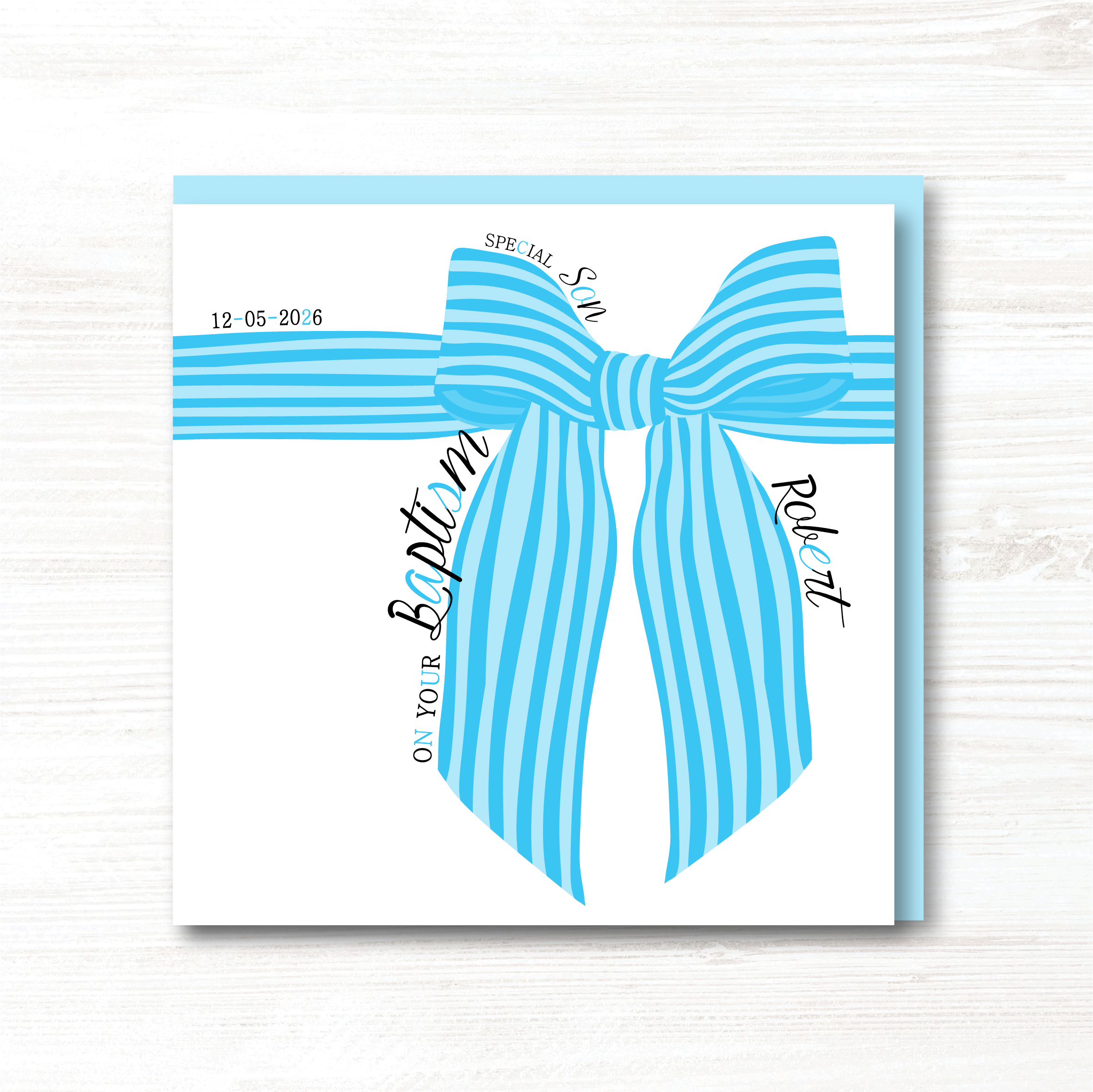 With ON YOUR CHRISTENING/BAPTISM/1SY HOLY COMMUNION down one ribbon,