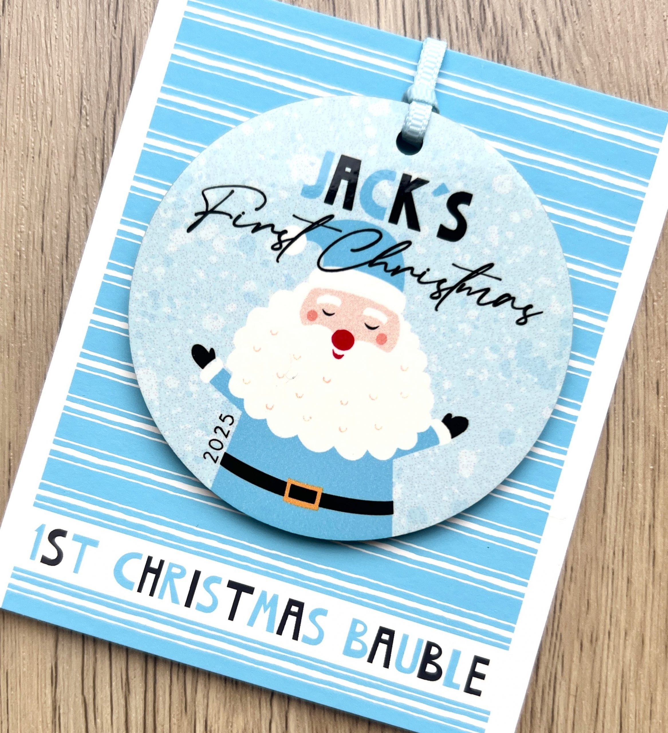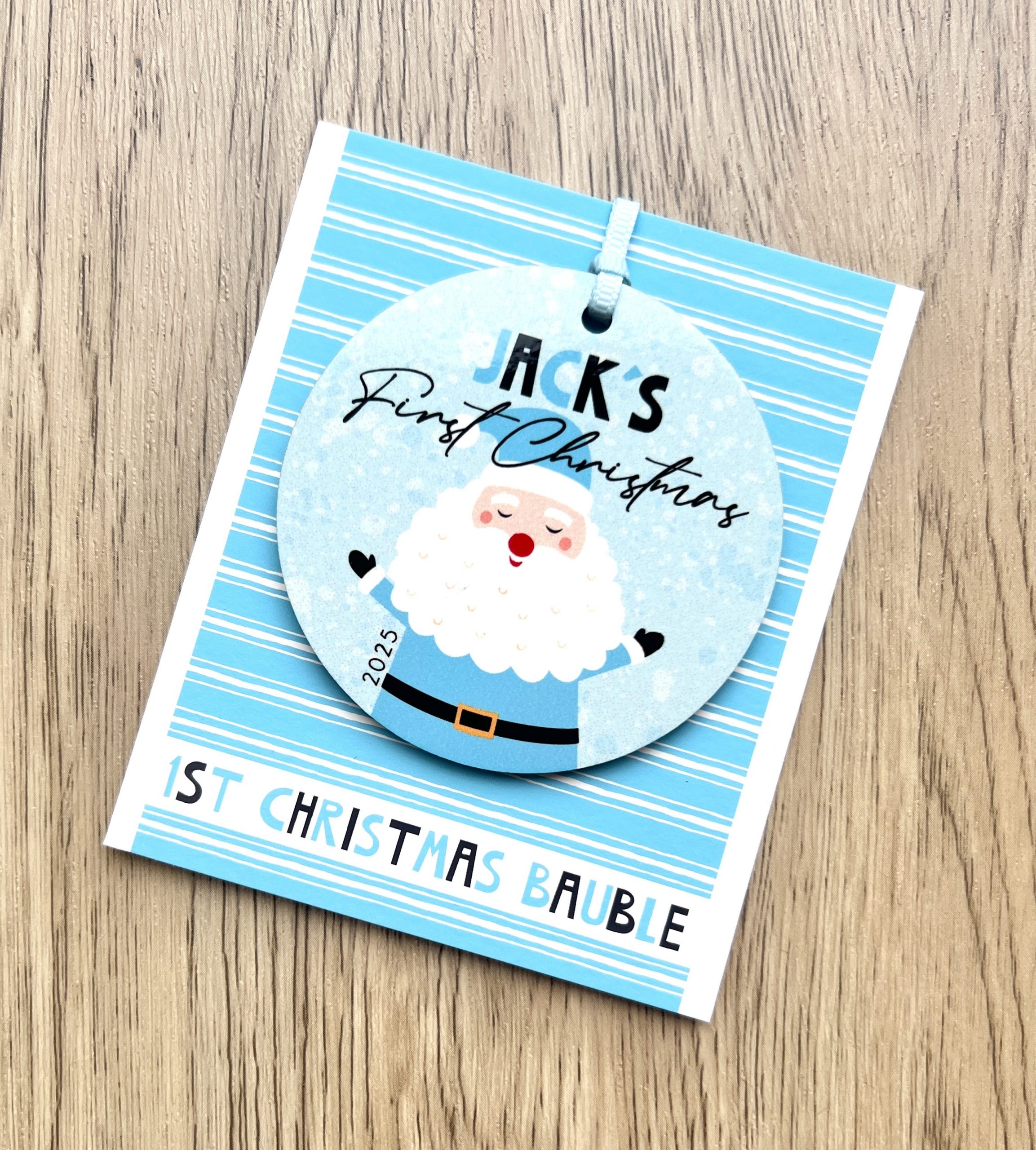 Personalised Father Christmas Wooden Baby Boys First Christmas Bauble, GiftPersonalised Father Christmas Wooden Baby Boys First Christmas Bauble, Gift