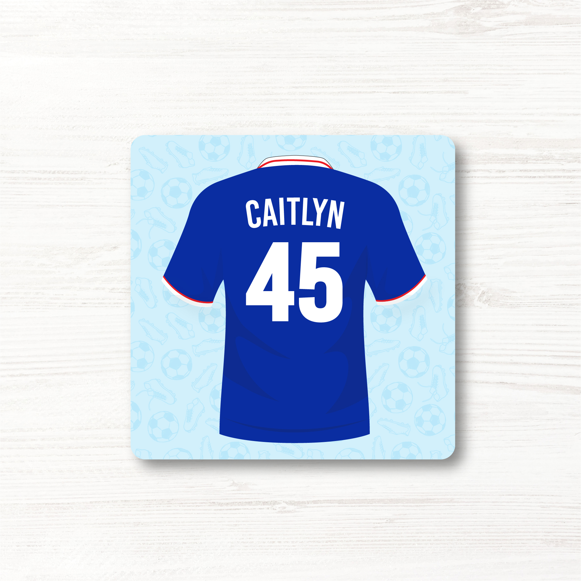 Personalised Football Team Coaster, Glasgow Rangers Colours.