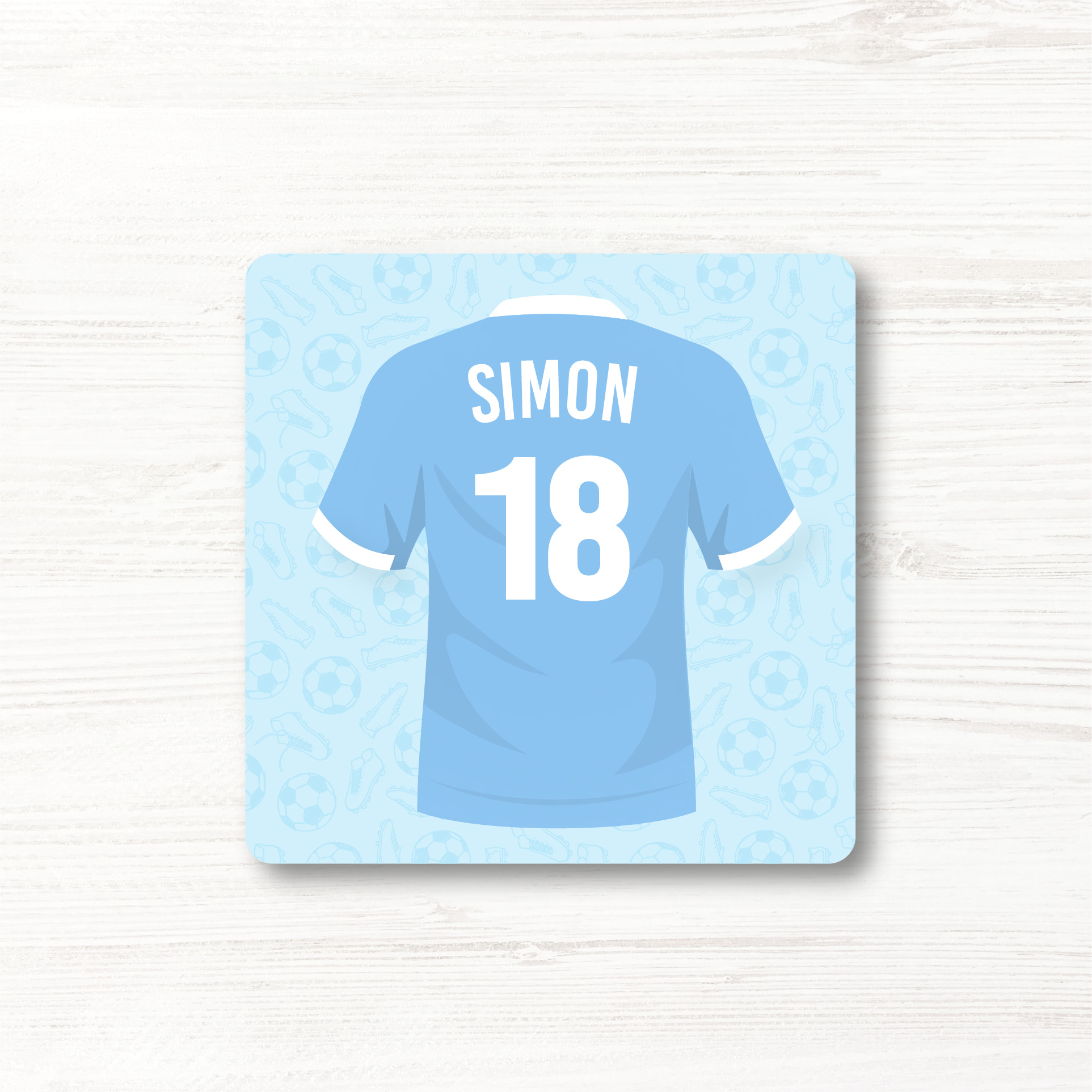 Personalised Football Team Coaster, Manchester City Colours.
