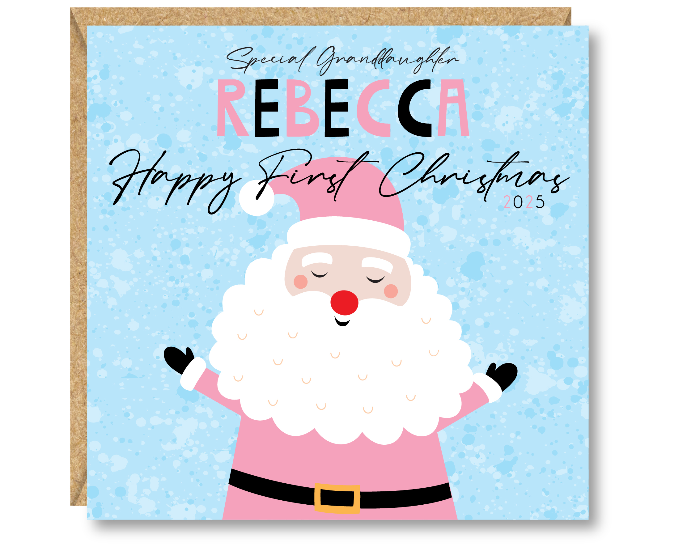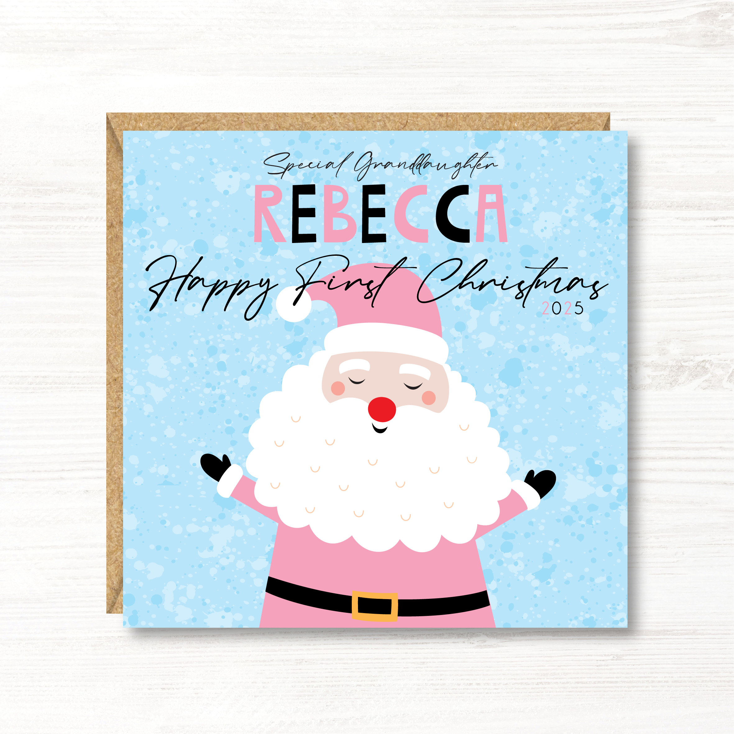Personalised Girls First Christmas Card, Father Christmas, Daughter, Niece, Goddaughter, Sister, Great GranddaughterPersonalised Girls First Christmas Card, Father Christmas, Daughter, Niece, Goddaughter, Sister, Great Granddaughter
