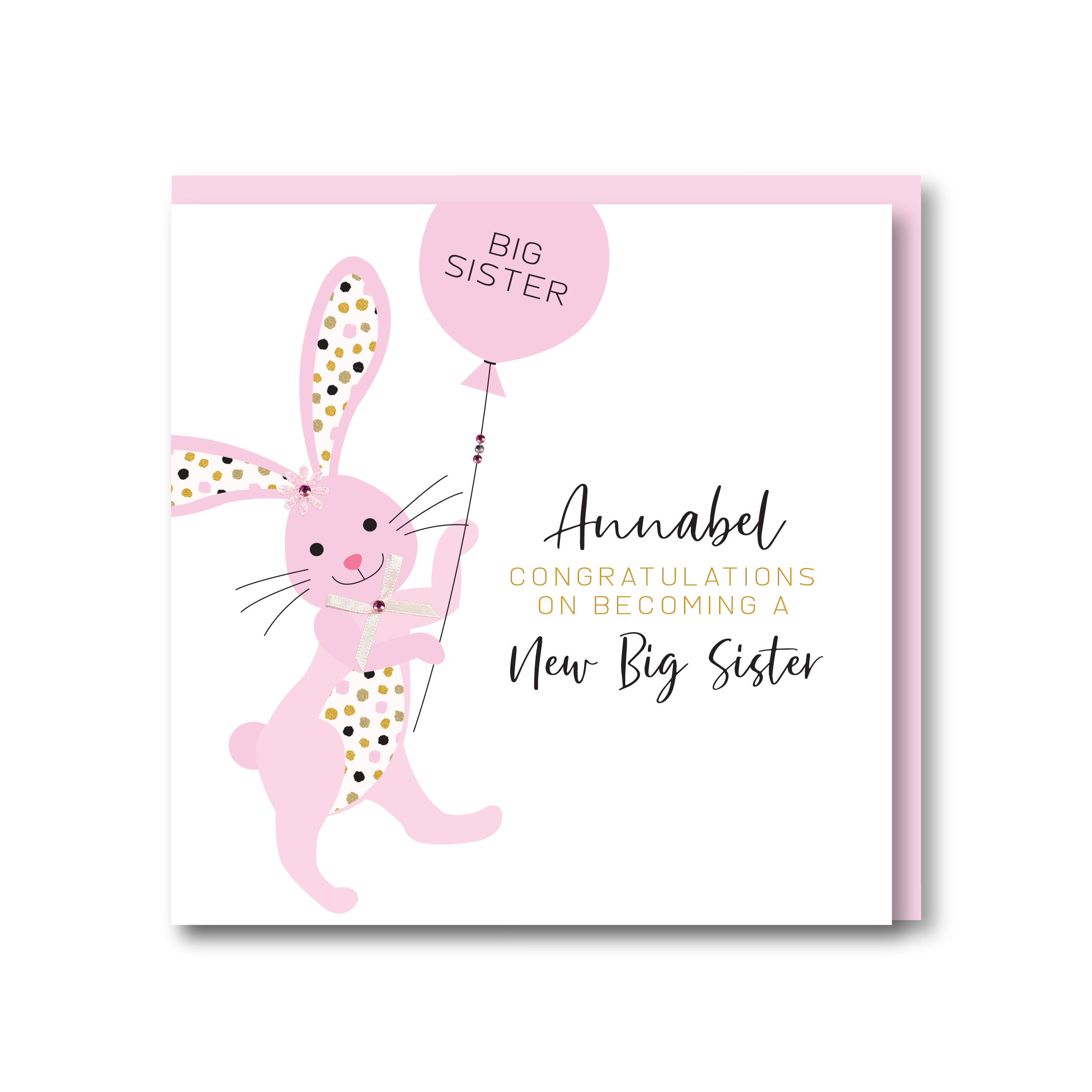 It is holding a pink balloon with BIG SISTER!