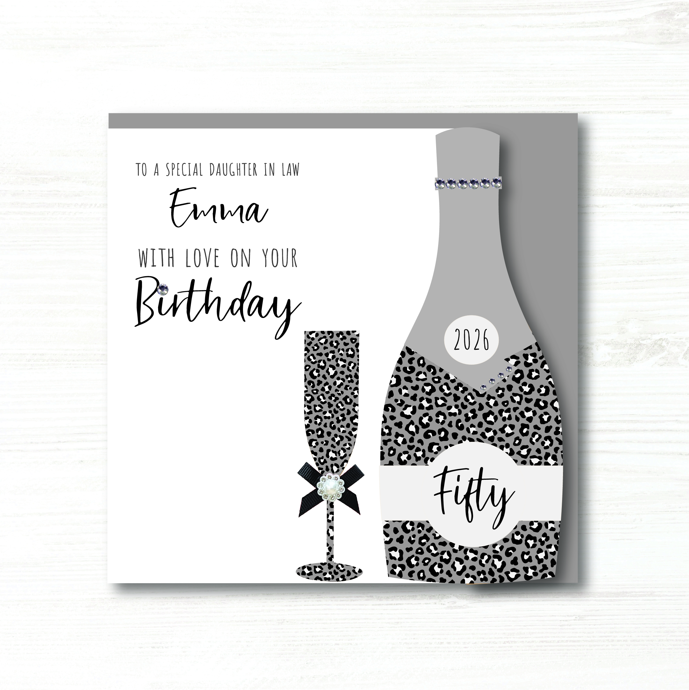 Card description:Beautiful Champagne bottle and glass with a animal print cut out to the right side,