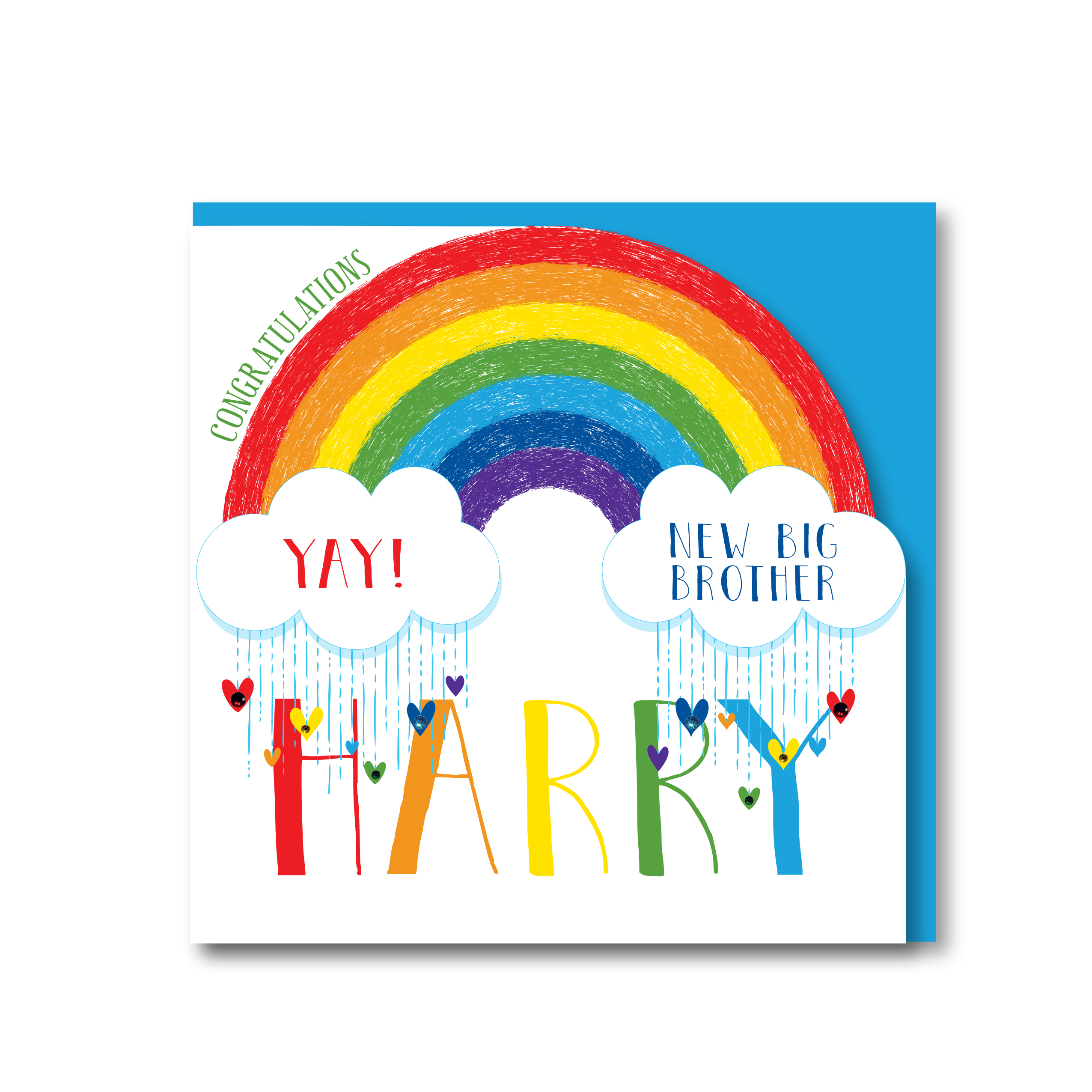 Hanging from the clouds is rain and lovely coloured hearts with 8 matching jewels!