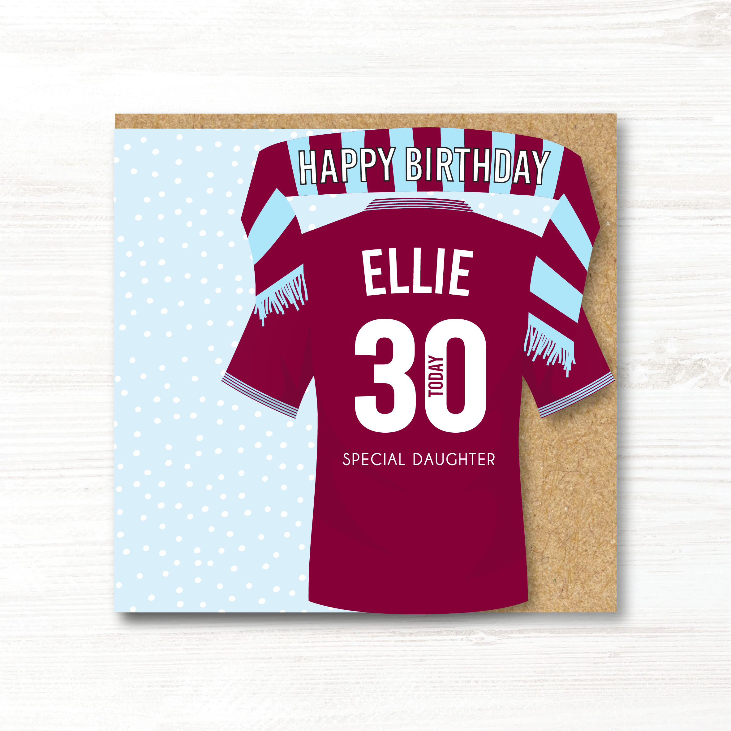 Personalised Handmade Football Birthday Card, West Ham Colours.