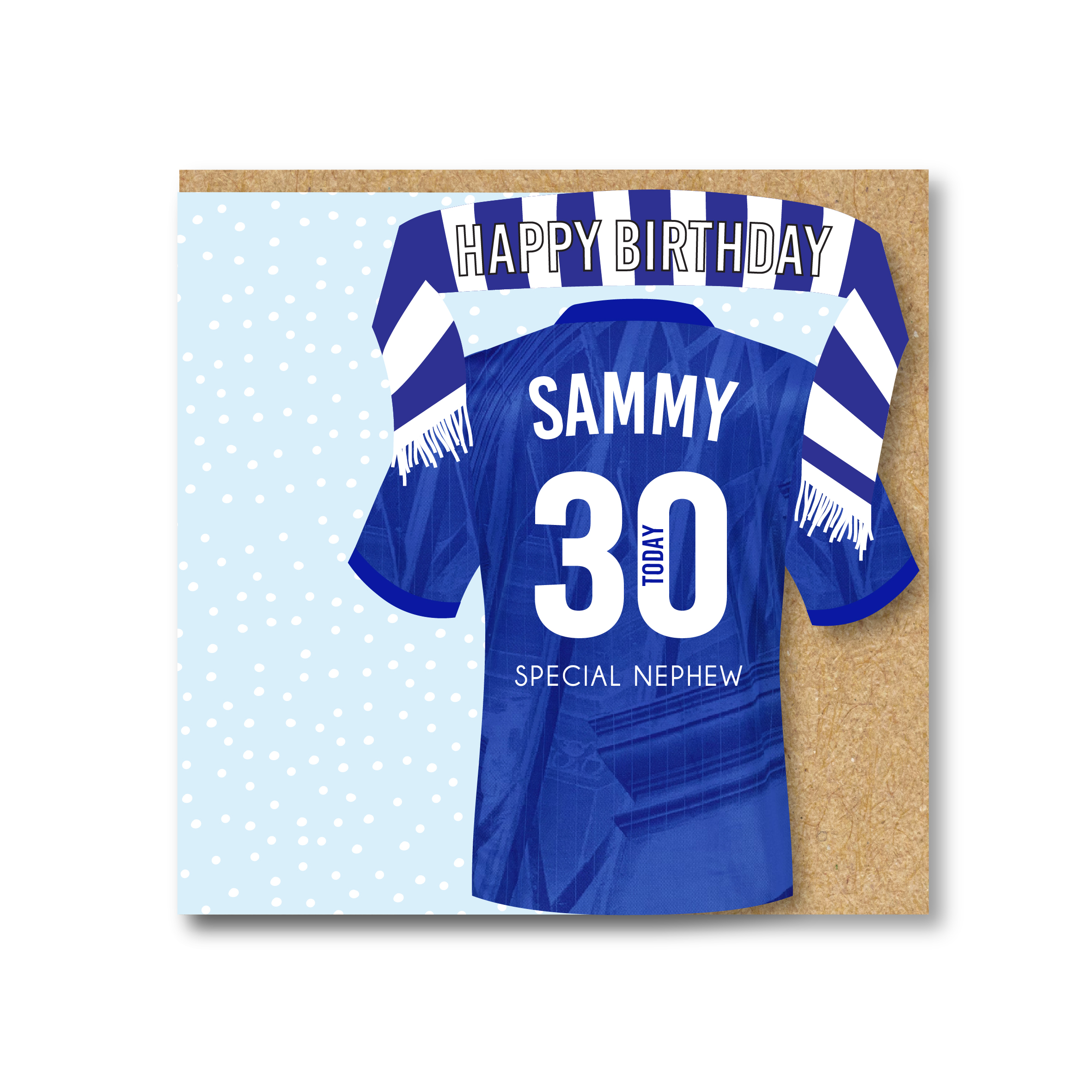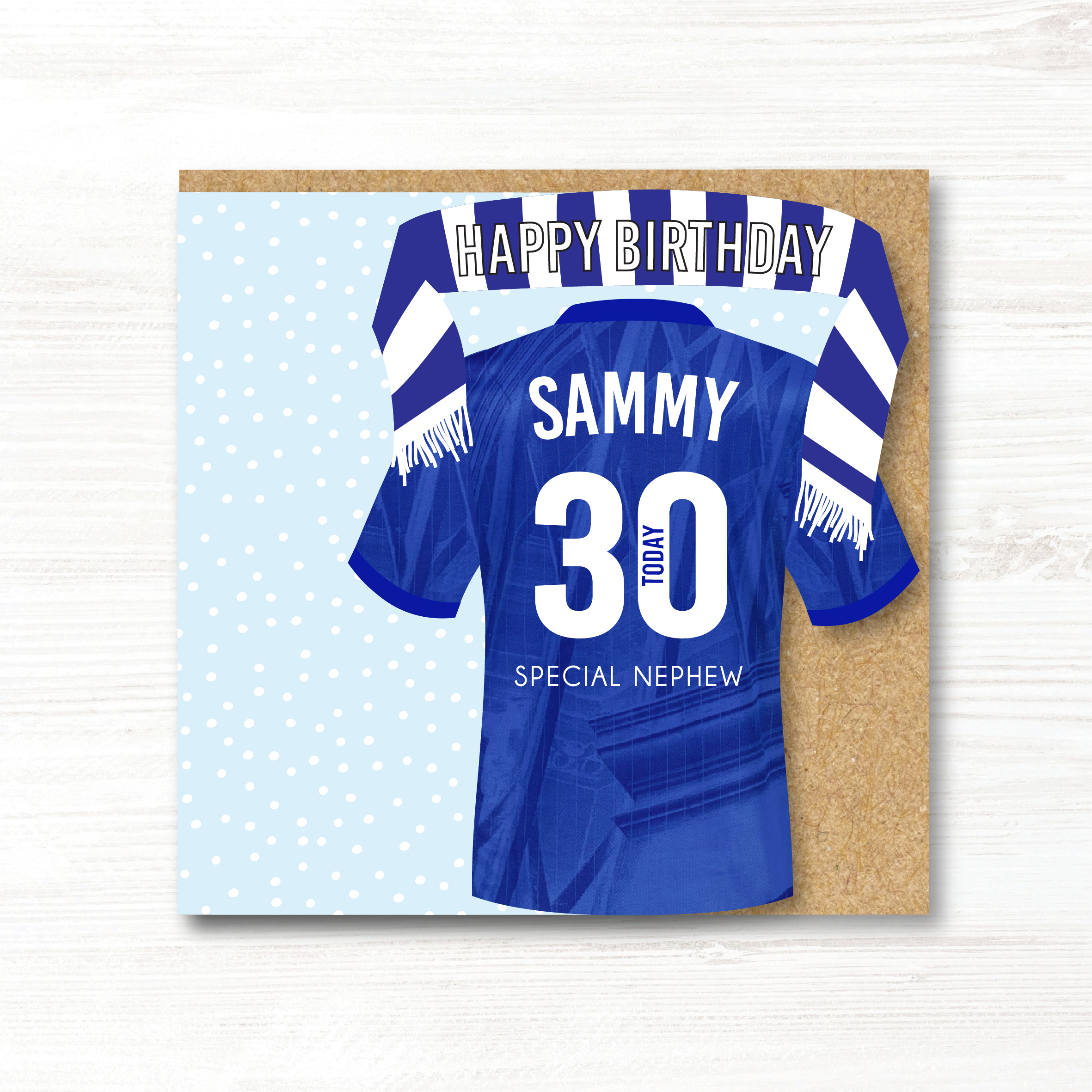 Personalised Handmade Football Birthday Card, Chelsea Colours.