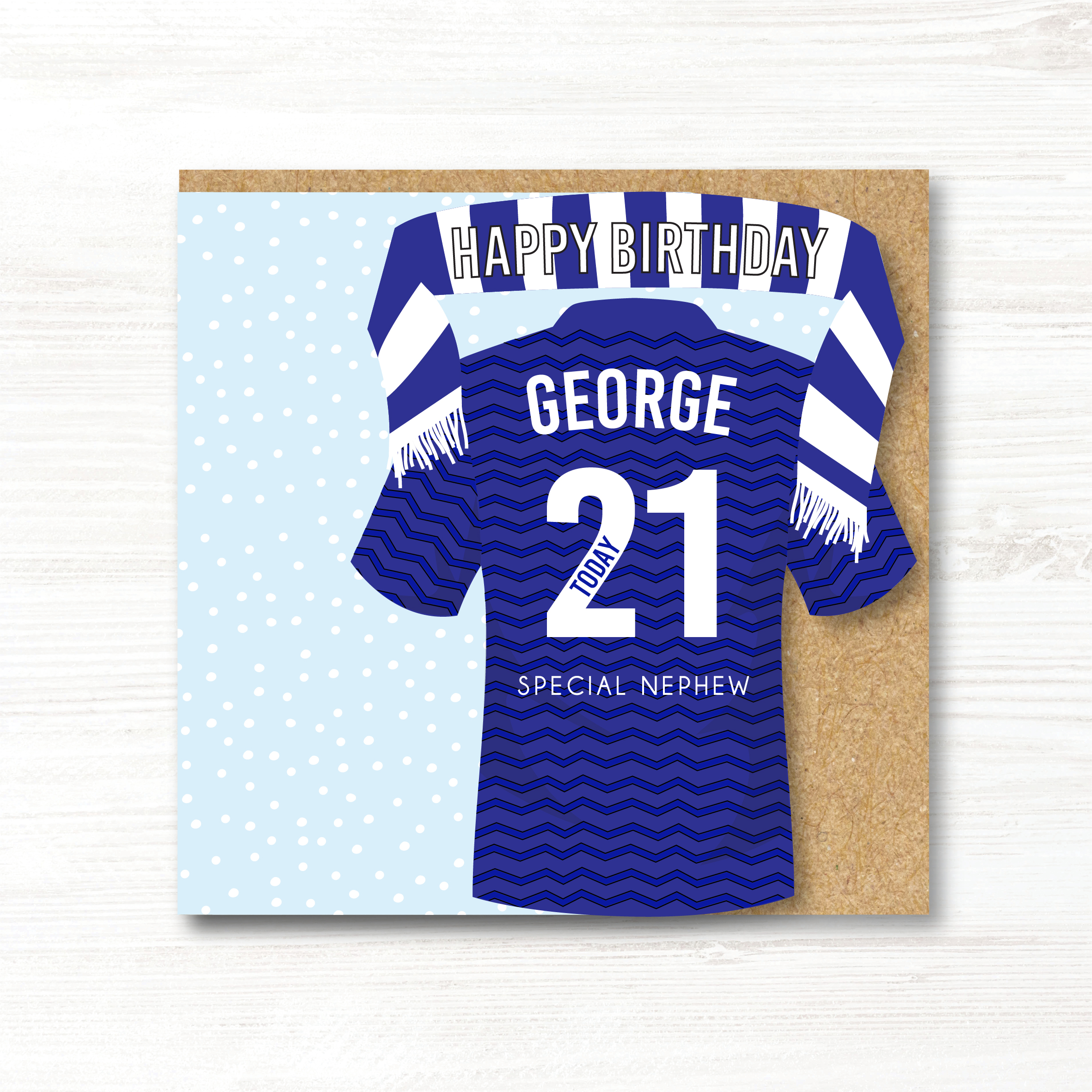 Personalised Handmade Football Birthday Card, Everton Colours.