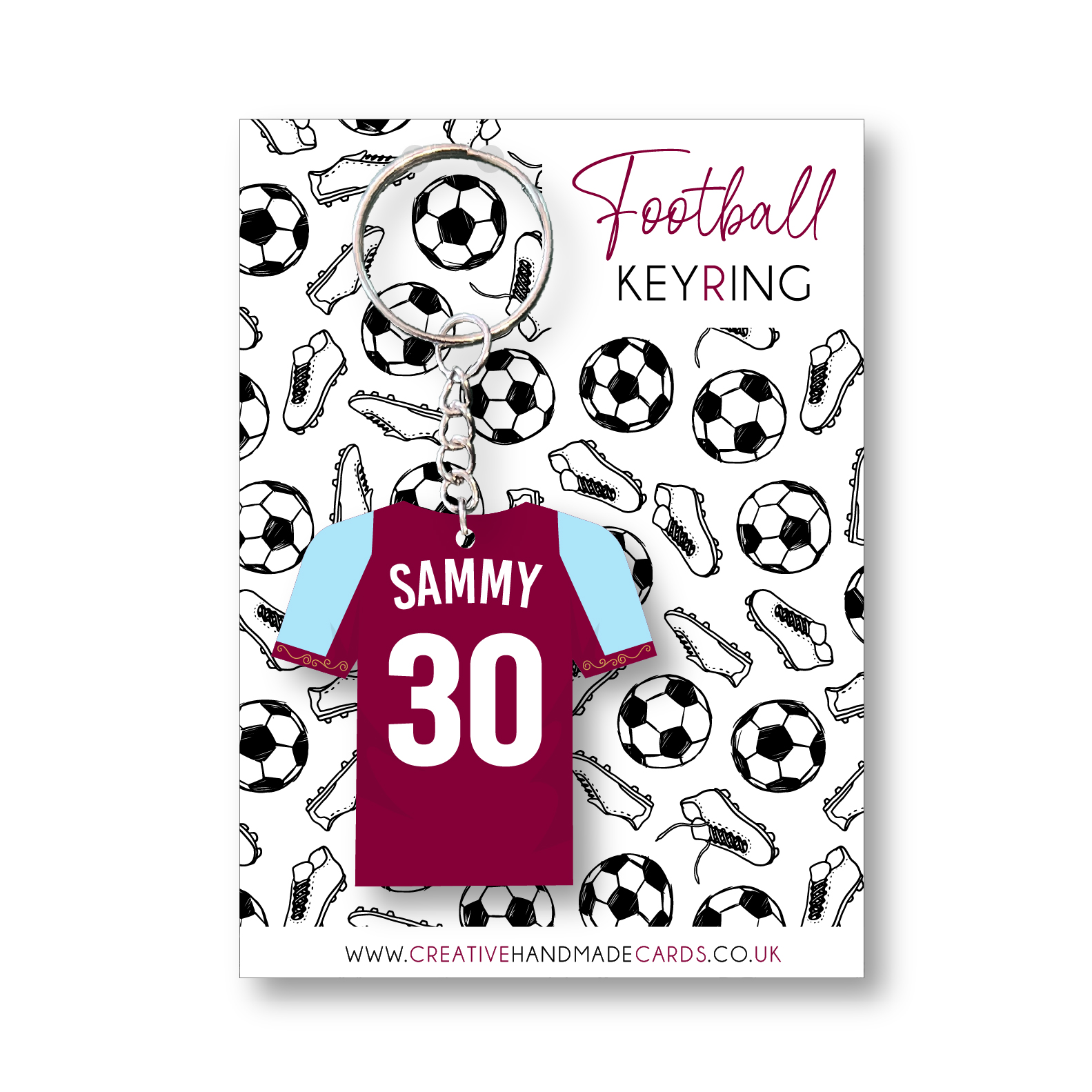 Personalised Handmade Football Keyring, Aston Villa Colours