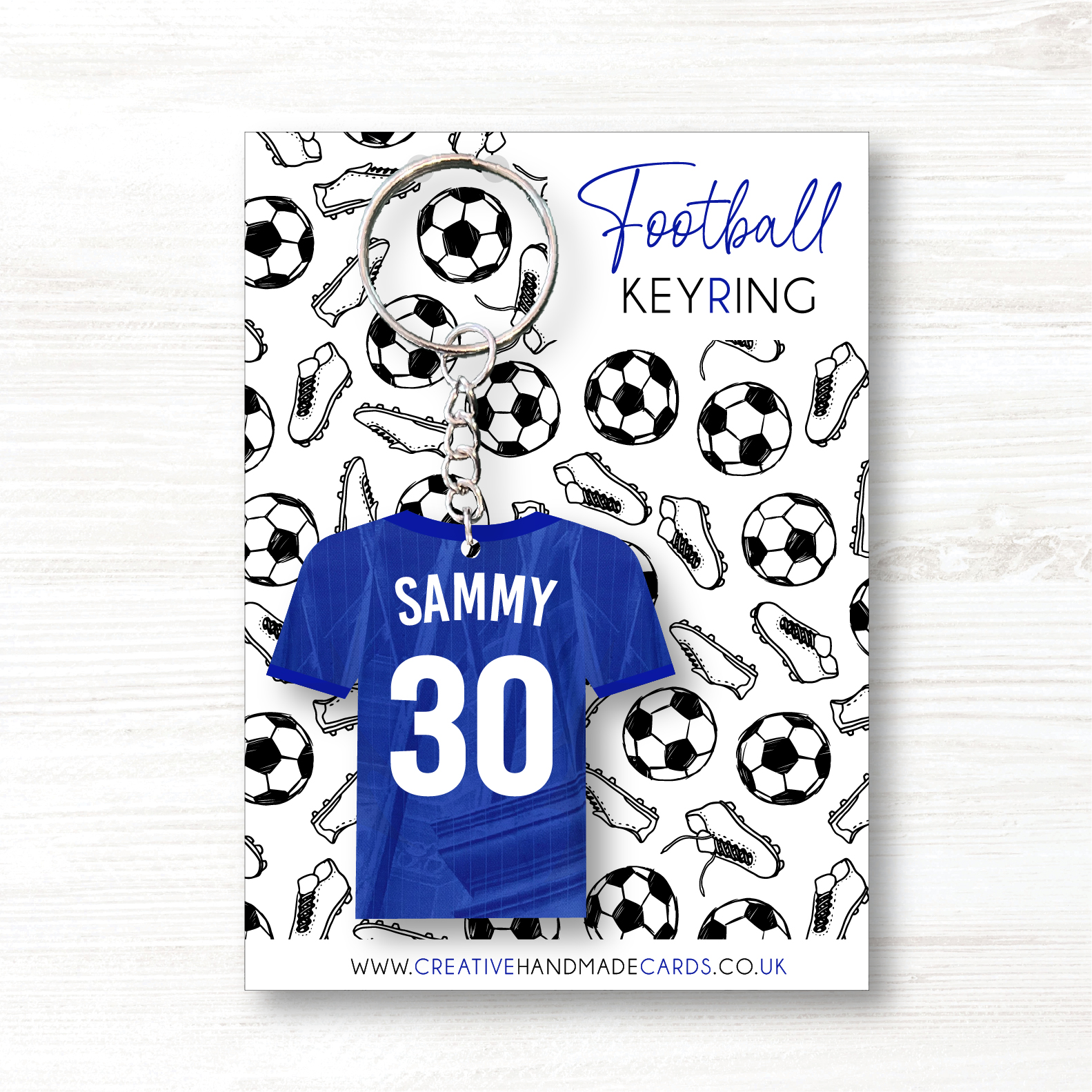 Personalised Handmade Football Keyring, Chelsea Colours