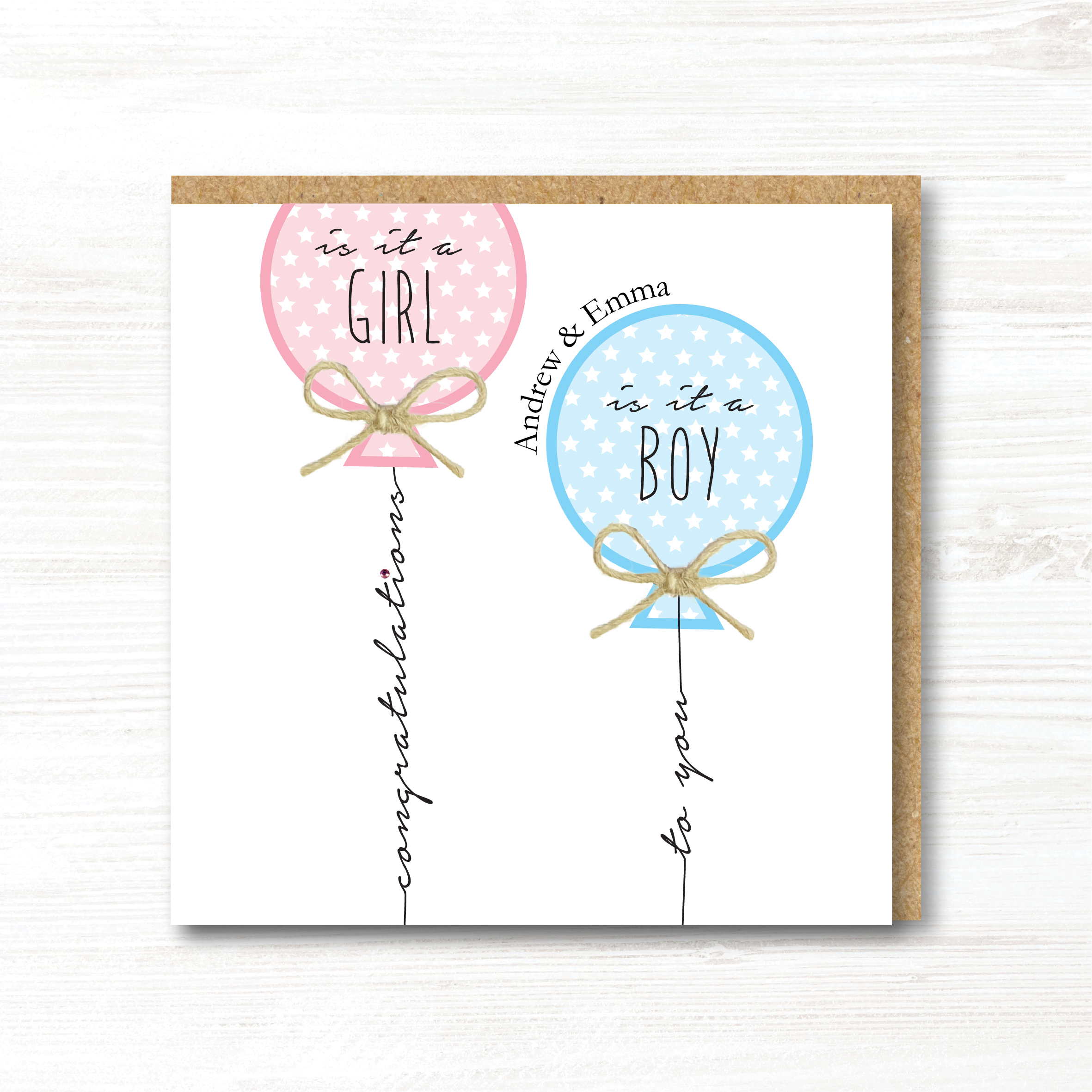 Personalised Handmade Gender Reveal Card