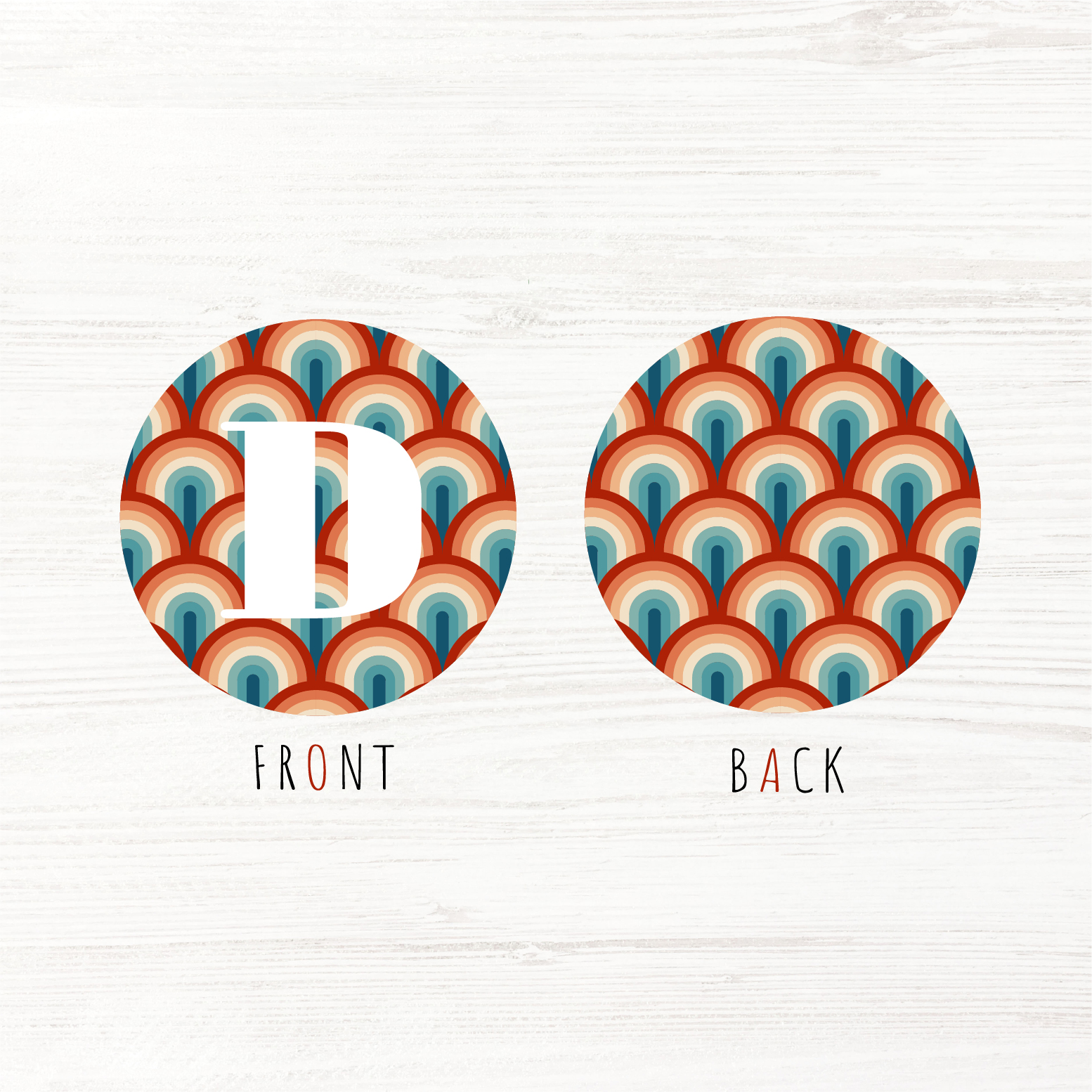 with pattern and LETTER on the front.