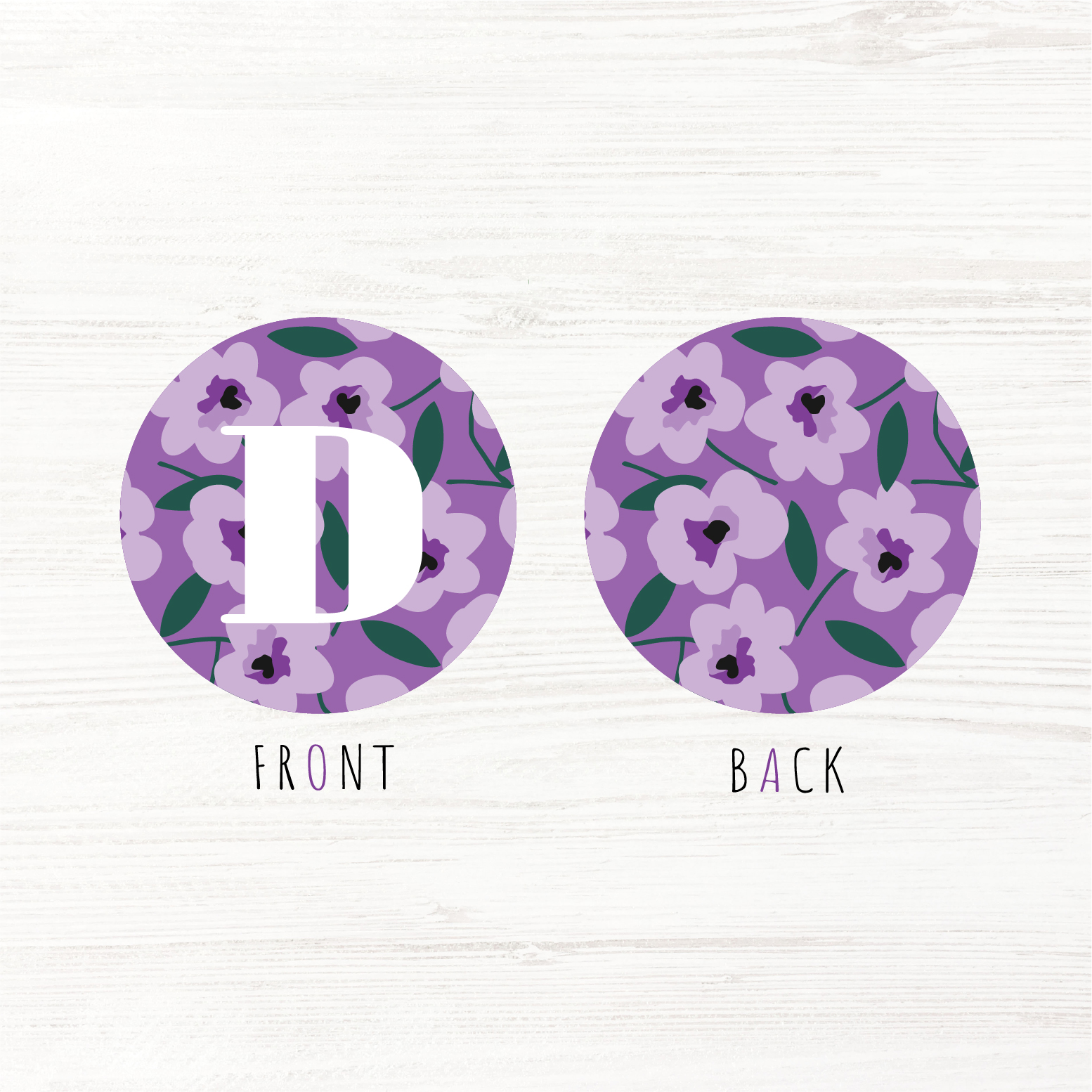 with pattern and LETTER on the front.