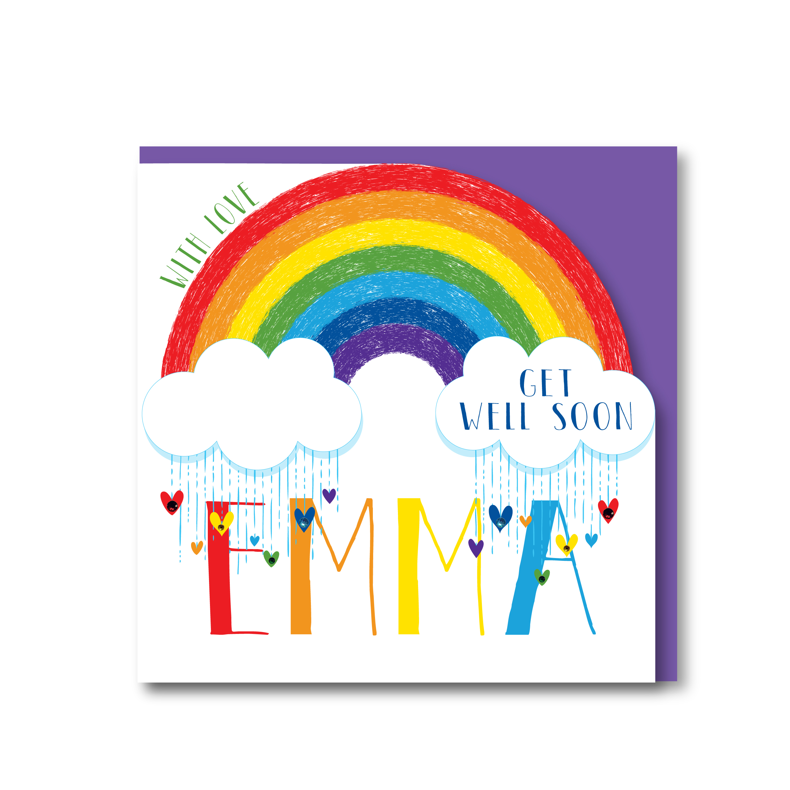 Hanging from the clouds is rain and lovely coloured hearts with 8 matching jewels!