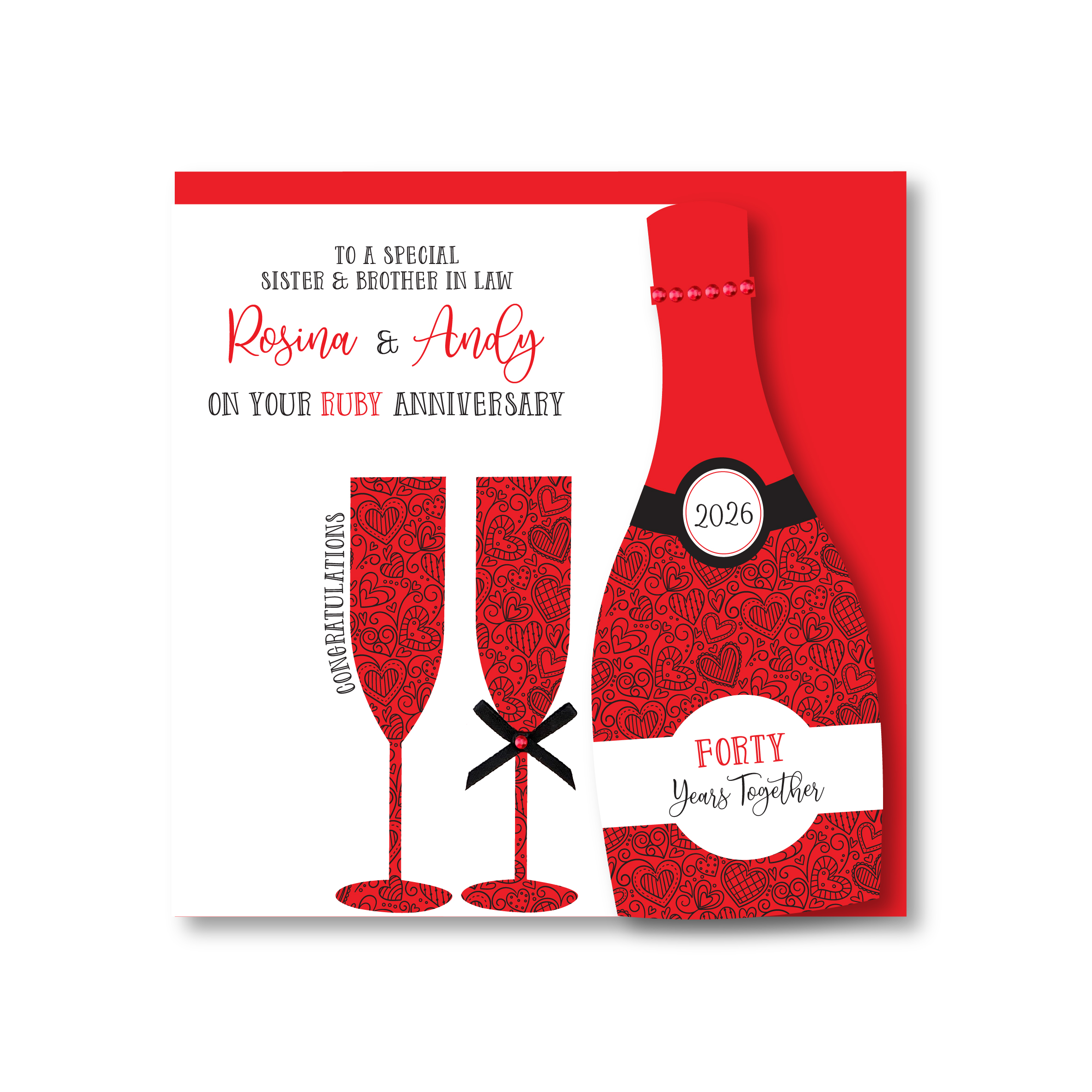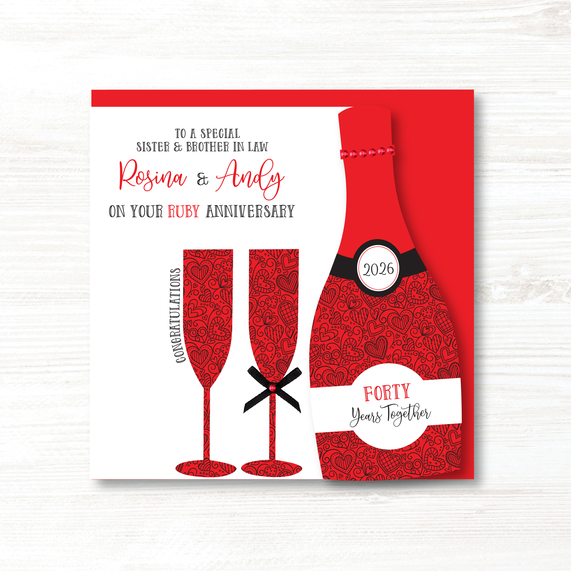and ON YOUR RUBY WEDDING ANNIVERSARY and CONGRATULATIONS around the glasses.
