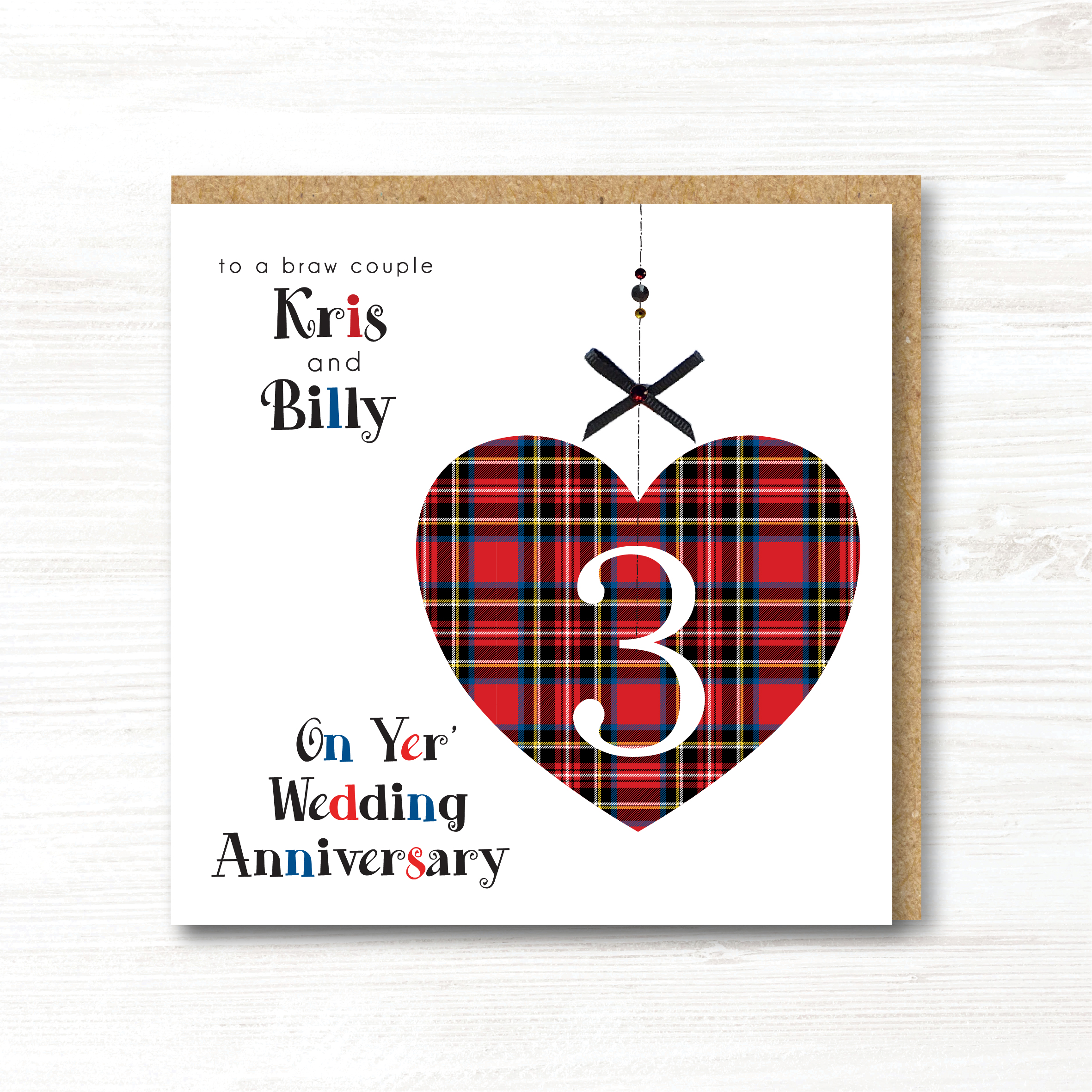 Wording at the top is TO A BRAW COUPLE and PERSONALISED NAMES.