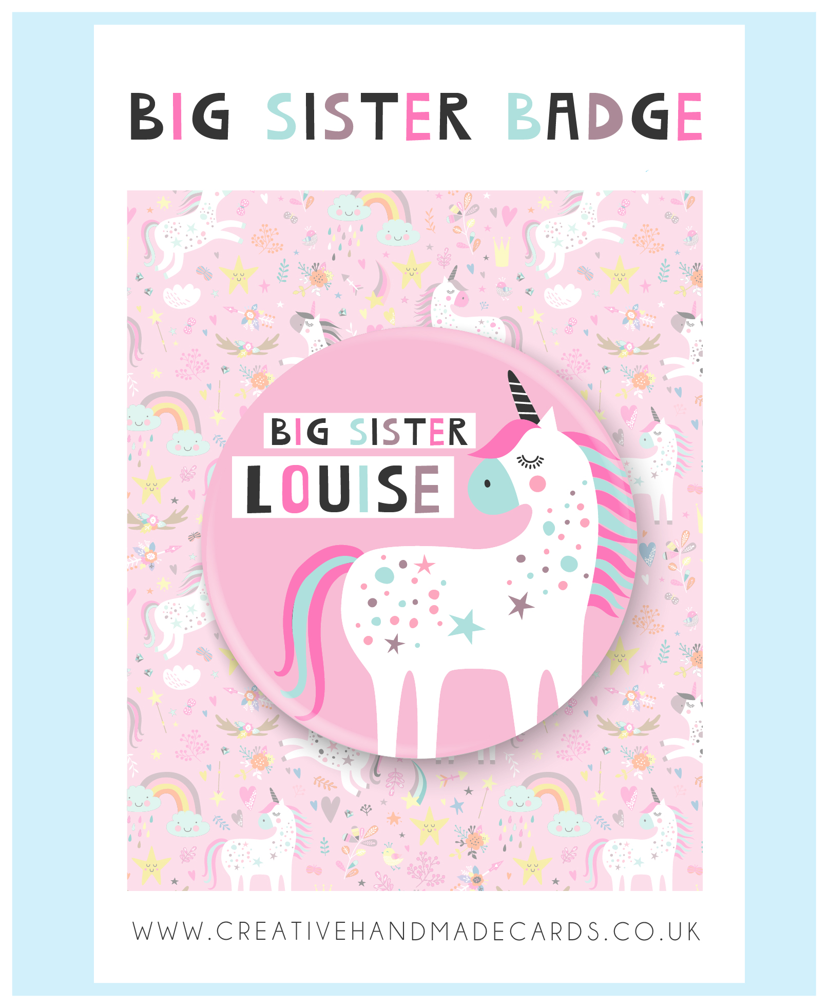 with PERSONALISED NAME and BIG SISTER.